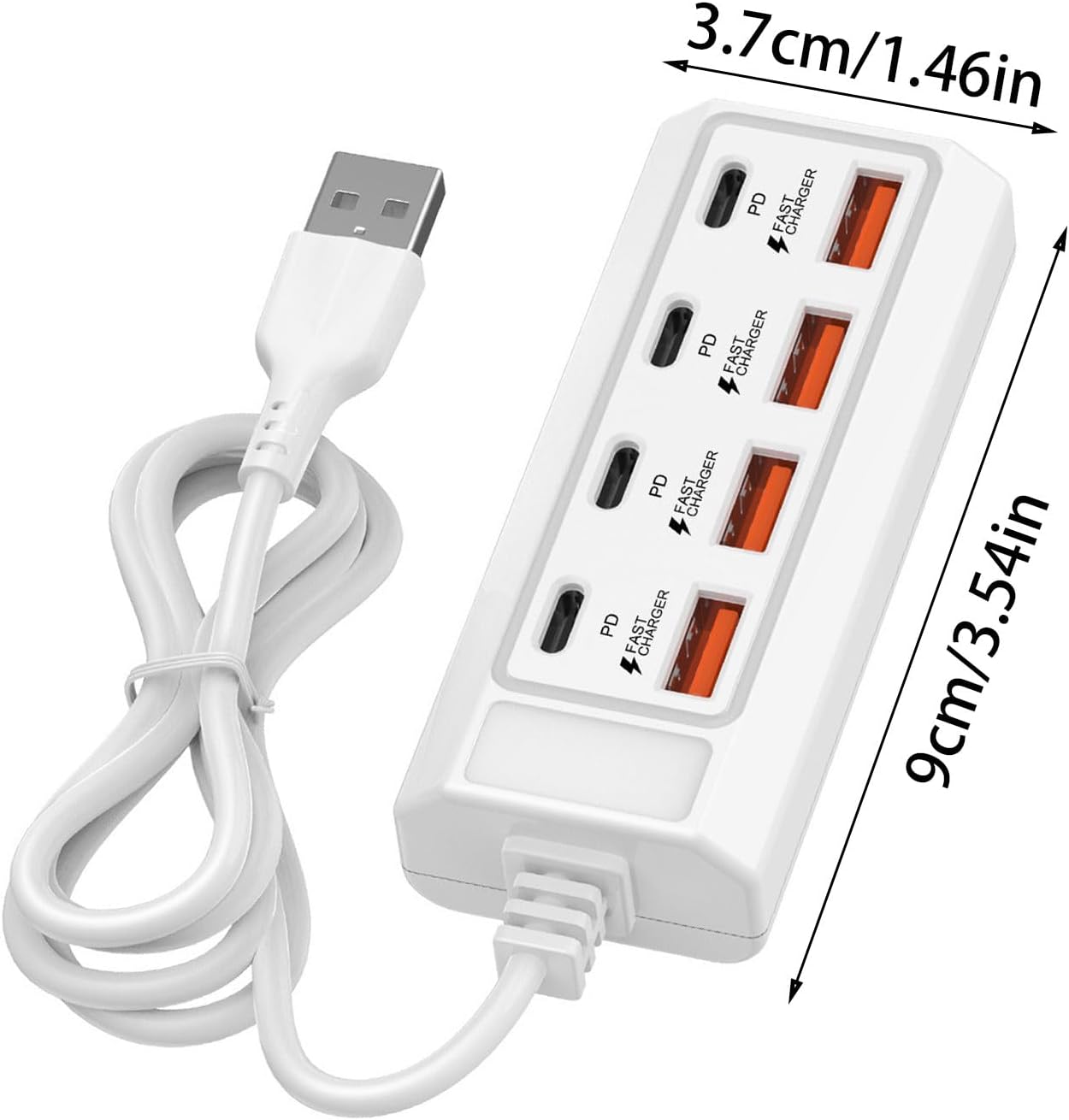 8 Port USB Charging Adapter Type C USB Wall Charging Adapter Adapter Multiports Fast Charging Travel Socket Phone USB Plug Adapter Features: The USB Splitter allows you to charging up to 8 devices simultaneously with its 4 USB and 4 Type C female Port, making essential accessory for multiple dev...
