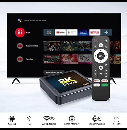 H S 8K Video 4K Android TV Set Top Box with Voice Remote, 8GB,128 GB TV Box-S, Ultra HD Smart Media Player