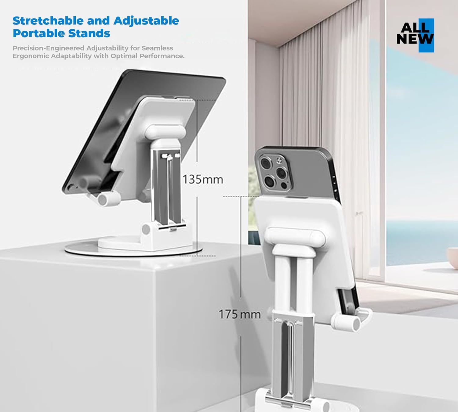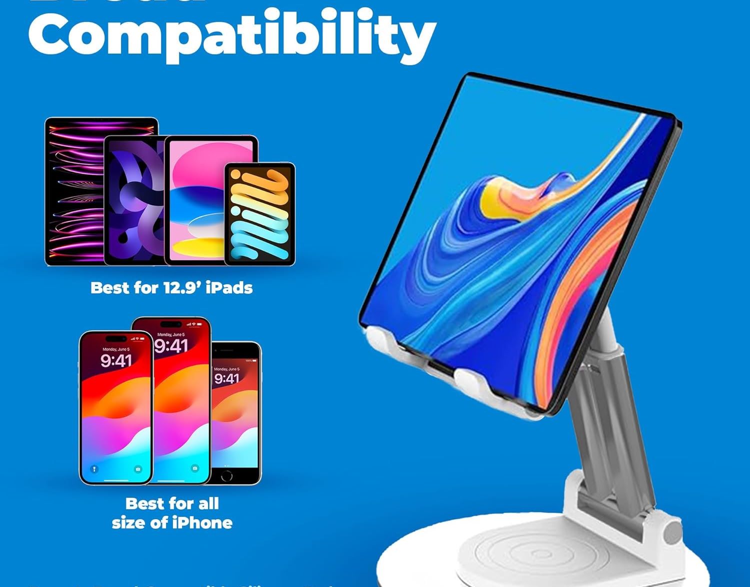 Brand Universal Manufacturer Universal Series Tablet Stand with Rotation Colour white Form Factor Table Stand Item Height 3 Centimeters Item Width 13 Centime...
