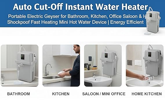 H S 2 Litre Instant Water Heaterwith MCB & Auto Cut-Off | Instant Portable Electric Geyser for Bathroom, Kitchen, Office & Salon