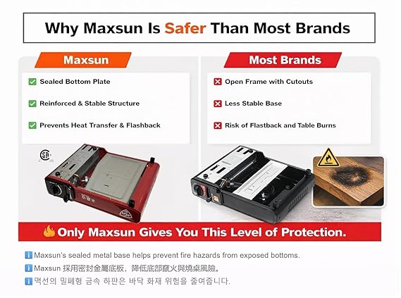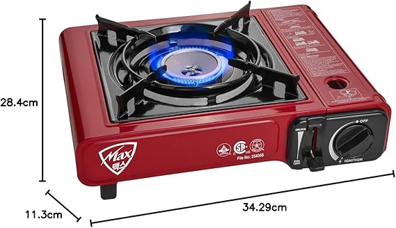 H S Gas Stove MS-2500, Up to 8000 BTU, Camp Stove, with Carrying Case (Red)