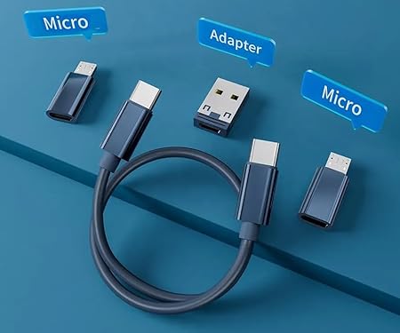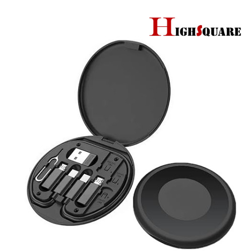 H S Portable Multi-Functional Fast Charging Mini Data Cable Set for Android, Type C Charging and Card Pin - Black