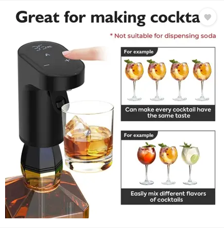H S Wine Rechargeable Auto Drink Dispenser for All Bottle Sizes Black 350 L Liquid Dispenser (Black)