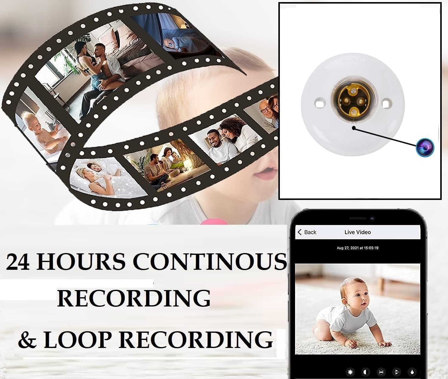 HD WiFi 1080P Spy Bulb Holder Camera Hidden Socket Cam with Live Audio & Video Recording