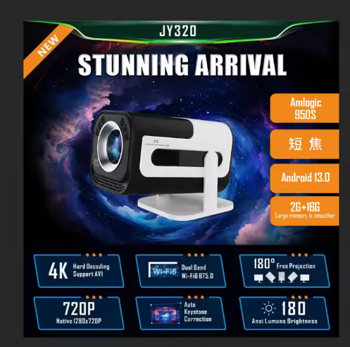 High Square Smart projector 4k decoding Android 13 2GB 16GB Amlogic T950S Home Theater Portable HD Proyector smart projector