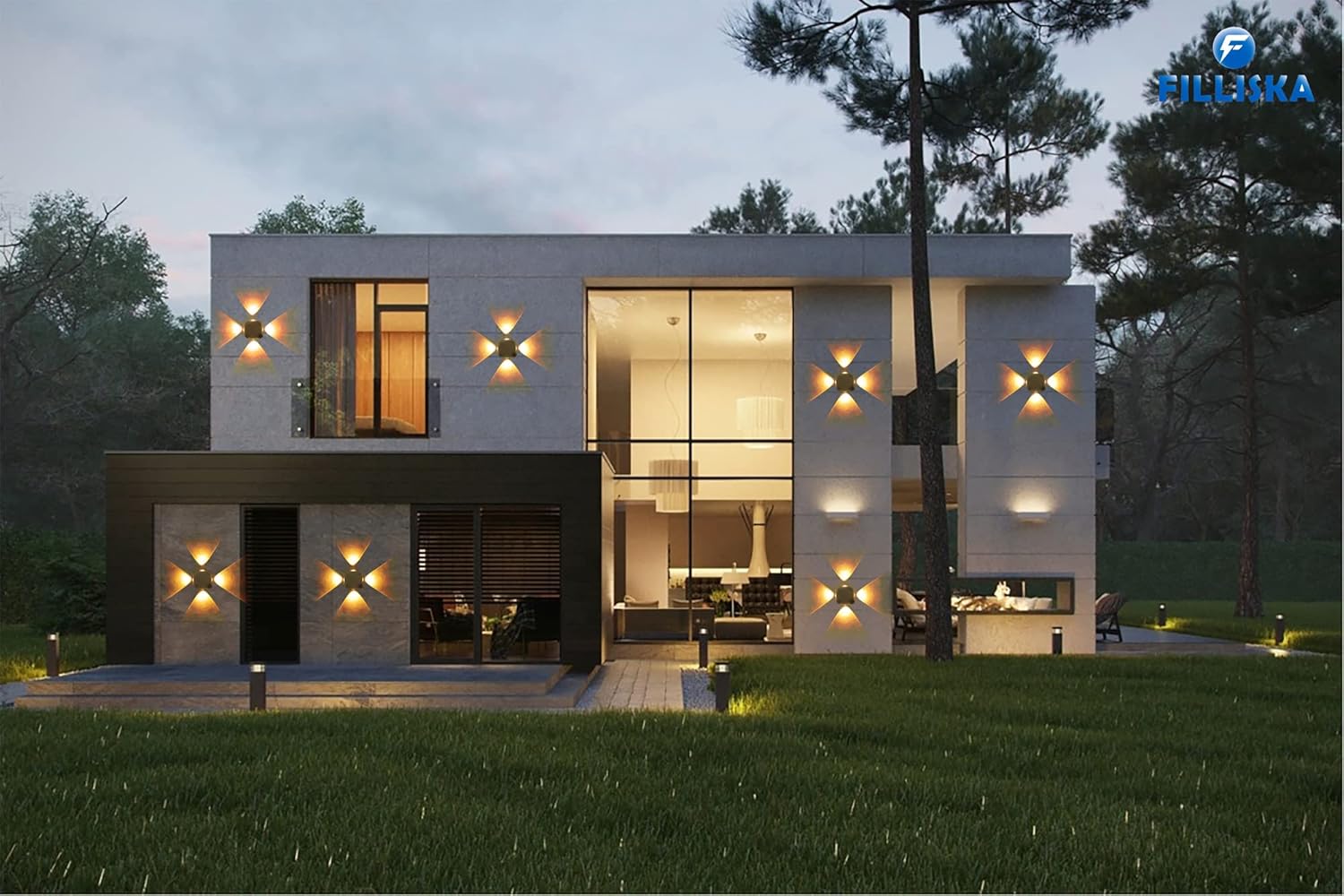 LED Wall Light 4 Way Splitter, Warm White, IP-65 Rainproof & Shockproof Alluminium Body