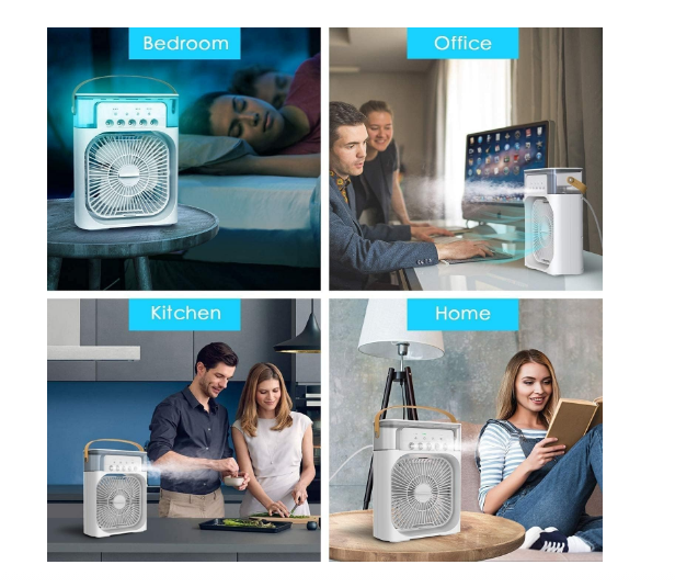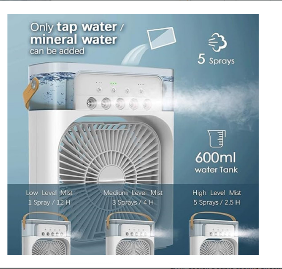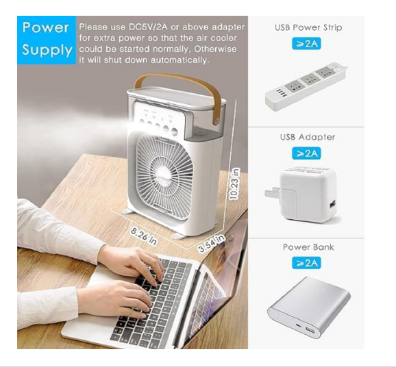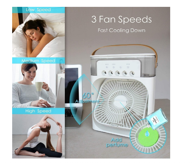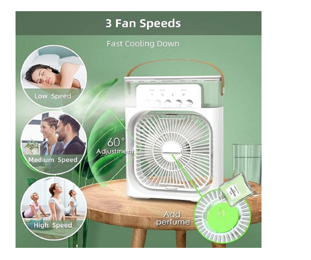 Easily portable and perfect for small spaces like personal desks, bedrooms, or dorm rooms. Multiple Speed Options: Customize your cooling experience with 3 different fan speeds. Eco-Friendly and Quiet: Energy-efficient design ensures a cool atmosphere without consuming excessive power or generating ...