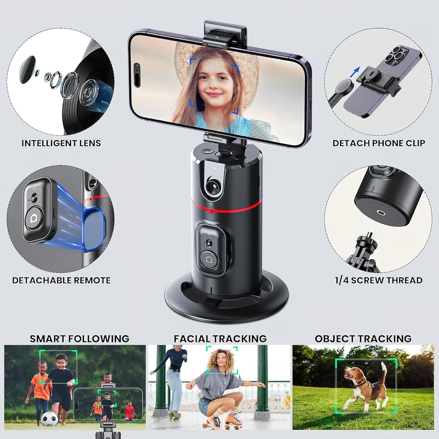High Square P 05 AI Intelligent Tracker Gimbal Stabilizer Combo | 360° Auto Face Tracking | Smart Gesture Control | No App Required | Selfie Vlogging Camera